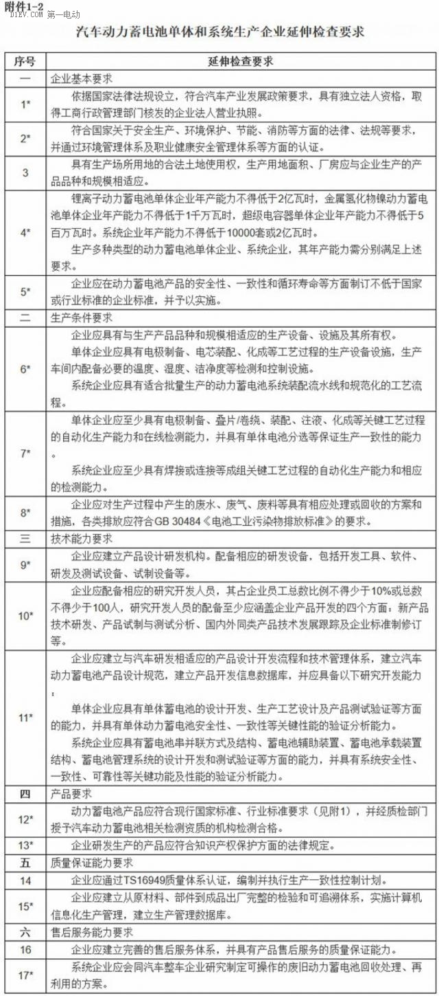 《汽車動力蓄電池單體和系統(tǒng)生產(chǎn)企業(yè)延伸檢查要求》見附件1-2。