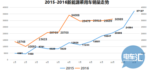 2016年1-10月的新能源乘用車總體銷量24萬臺,同比增長110%,增速相對健康合理。其中純電動車銷售17.2萬臺,增長152%;插電混動銷售6.9萬臺增長48%。