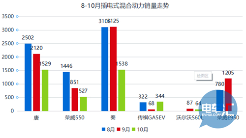 近幾月主打插電式混動車型銷量慘淡,比亞迪唐、榮威e550持續(xù)下降明顯,比亞迪秦10月銷量較上月折半,由3125臺降低到1538臺,降幅20.8%。