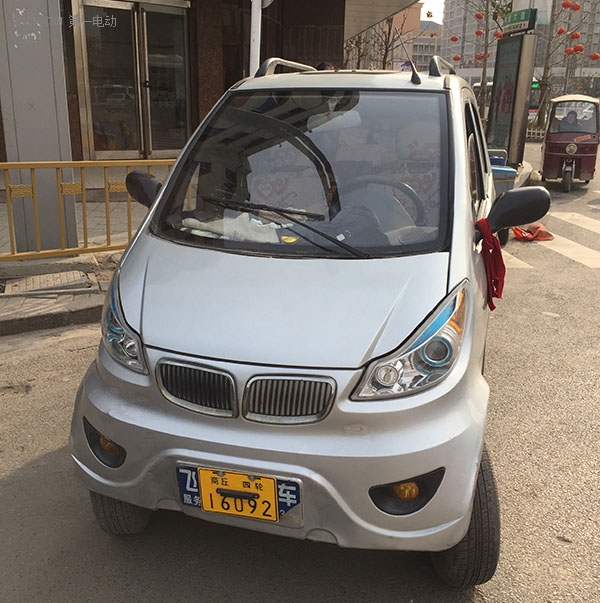 2月20日,電動網(wǎng)微電調(diào)研小團(tuán)隊(duì)來到了商丘。記者剛出商丘火車站就看到車身標(biāo)有“交通執(zhí)法”的巡邏車,車身后面還有“益高電動車”的品牌標(biāo)識。幾步之遠(yuǎn),還有一輛掛有“商丘.四輪”黃色車牌的低速電動車停放在路邊。商丘對低速電動車普遍進(jìn)行掛牌管理嗎?個人如何申請牌照?政府又是如何管理低速電動車上牌上路的?記者隨后走訪了商丘梁園區(qū)、睢陽區(qū)等社區(qū),并對當(dāng)?shù)亟痪M(jìn)行了采訪。